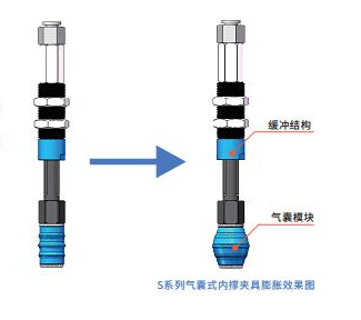 ISC airbag internal support clamp is composed of a buffer rod and an airbag module. By thread connection, it is convenient for users to replace the airbag module, saving the installation and debugging time of users.