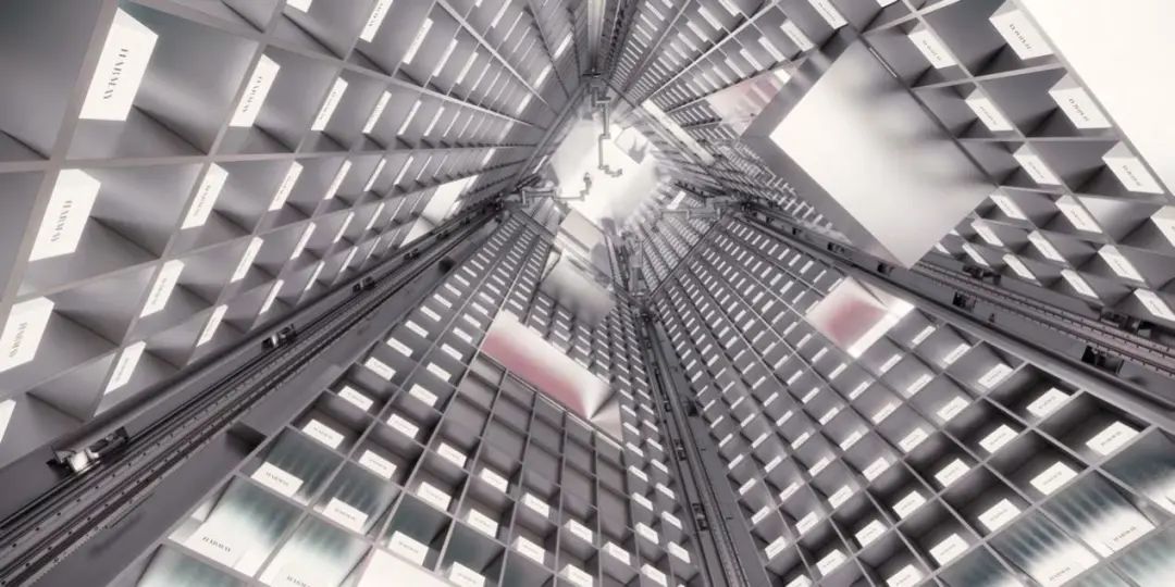 This "science fiction world" is the intelligent display three-dimensional warehouse created by SRT for HARMAY Wuhan Tiandi Store.