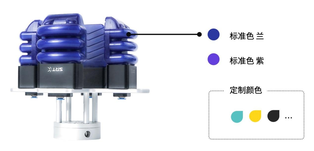 In addition, SRT uses flexible gripper instead of rigid gripper in order to prevent gripper scratching. SRT flexible gripper is an innovative flexible fixture designed to imitate the shape of starfish. It is made of standard silicone rubber (food grade) and has the advantages of good compatibility, gentle action and non-destructive grasping. It is suitable for grabbing cosmetics, blind boxes and other objects with soft packaging.