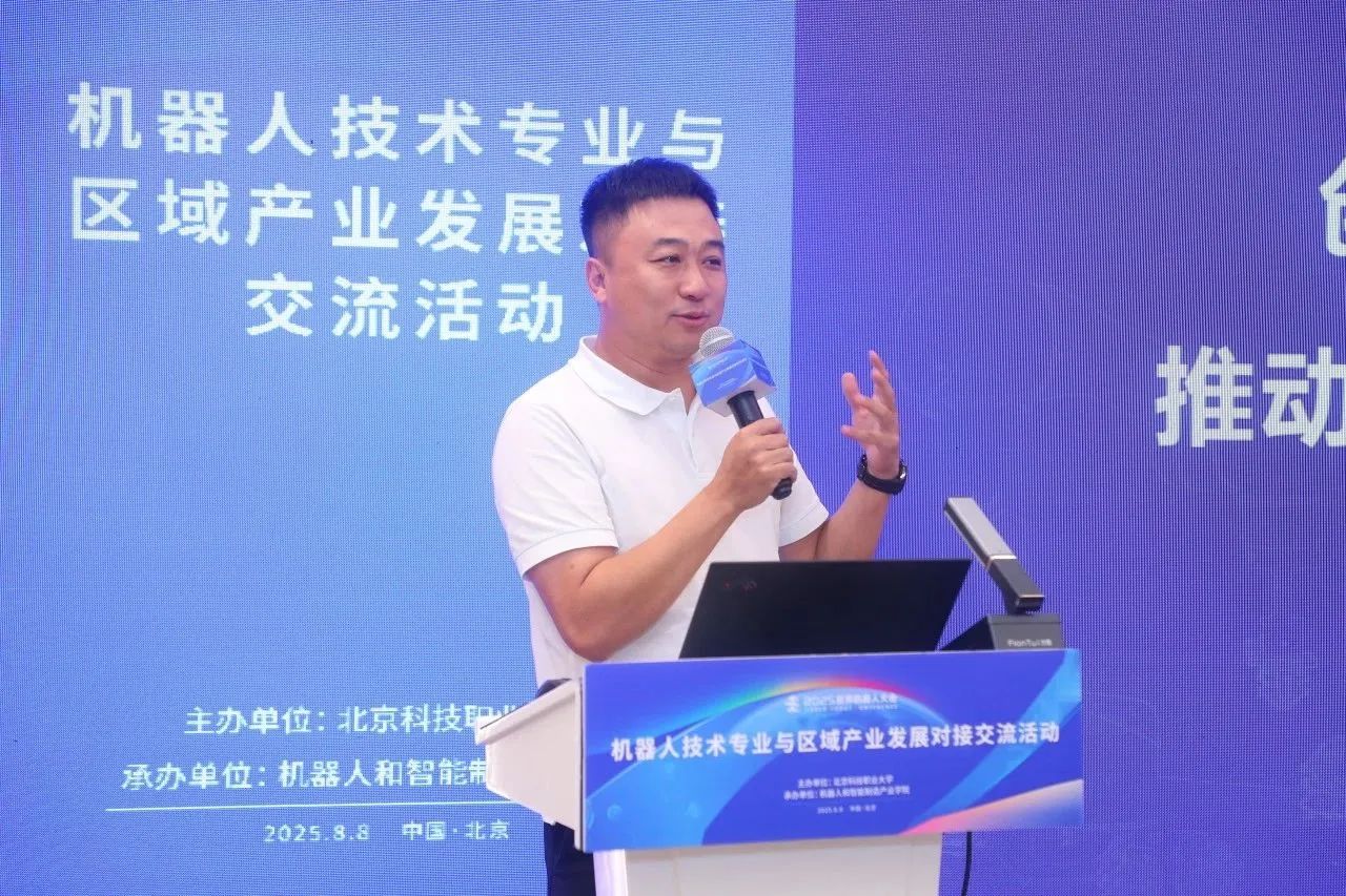 From August 8th to 12th, the 2025 World Robot Conference will grandly kick off at the Beijing Economic and Technological Development Zone Beiren Yichuang International Convention and Exhibition Center. As an important concurrent event of the 2025 World Robot Conference, the "Robot Technology Professional and Regional Industry Development Matchmaking and Exchange Activity" hosted by Beijing Vocational University of Science and Technology was successfully held in Zhongguancun (Yizhuang) International Robot Industry Park.