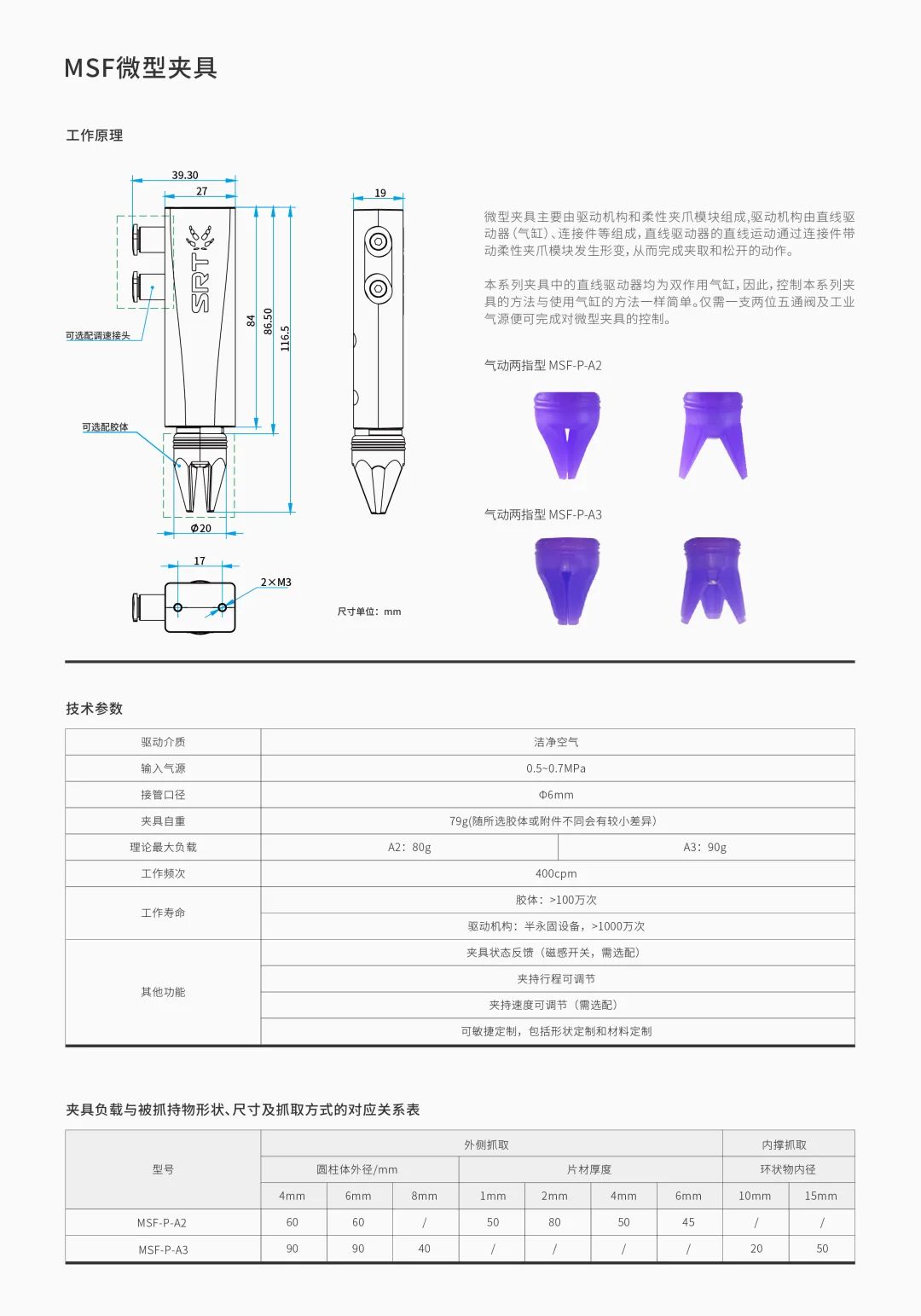 MSF系列微型夾具,是基于螃蟹鉗的驅(qū)動形式而仿生設計的?款創(chuàng)新型柔性夾具,其具有極強的適應性和較高的響應速度,可用于抓取精密及異形物件,且不會損傷產(chǎn)品表面,尤其適用于3C電子和注塑行業(yè)。