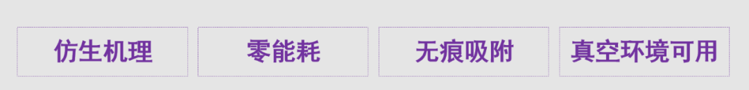 VFC范德華力吸盤靈感來自于對壁虎腳掌微觀特征的觀測和模仿,通過特殊的聚合物材料和um級的表面微觀成型工藝,使吸盤能夠與各種物體表面產(chǎn)生強(qiáng)烈的分子間作用力,吸附力強(qiáng)度可達(dá)0.5kg/cm2。得益于其特殊的吸附機(jī)理,無需供電、供氣或編程,簡單可靠,能夠吸附多孔工件,甚至在真空環(huán)境下正常使用,且工件表面無印記殘留,極大的拓展了自動化設(shè)備的應(yīng)用范疇。