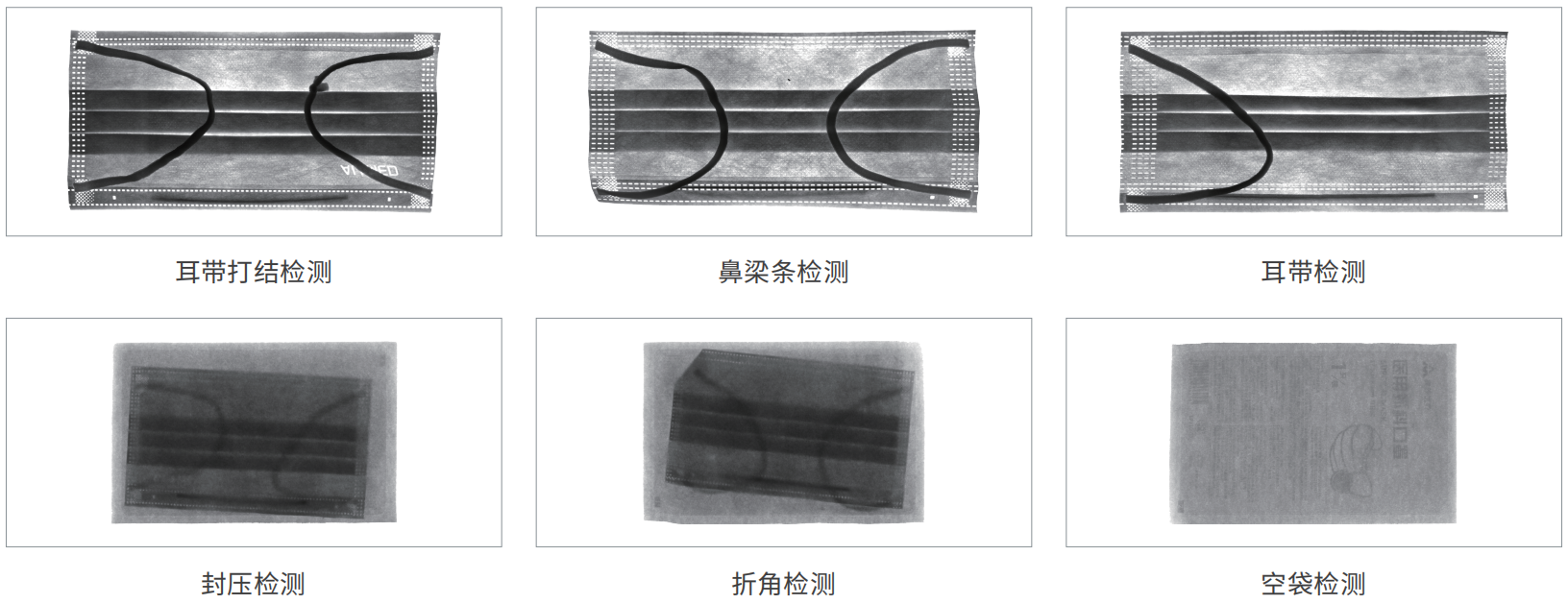 口罩平包檢測內(nèi)容: 壓邊、封壓不良、空紙袋、膠帶殘留、折角、多片、臟污和異物、噴印不良等;