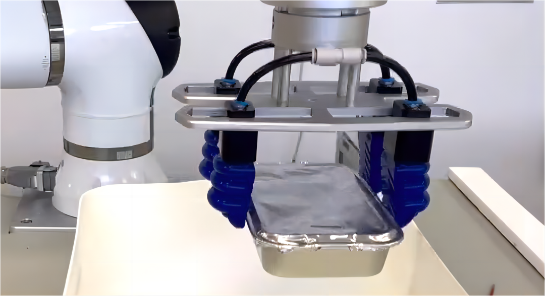 SFG柔性?shī)A爪除了可抓取用于電子、醫(yī)藥等領(lǐng)域的各類(lèi)吸塑托盤(pán),還可對(duì)預(yù)制菜托盤(pán)以及裝有食物的各種鋁箔盒進(jìn)行分揀搬運(yùn),如: