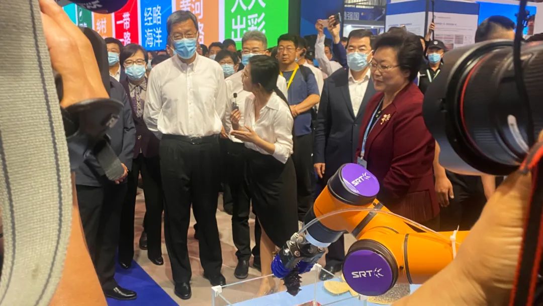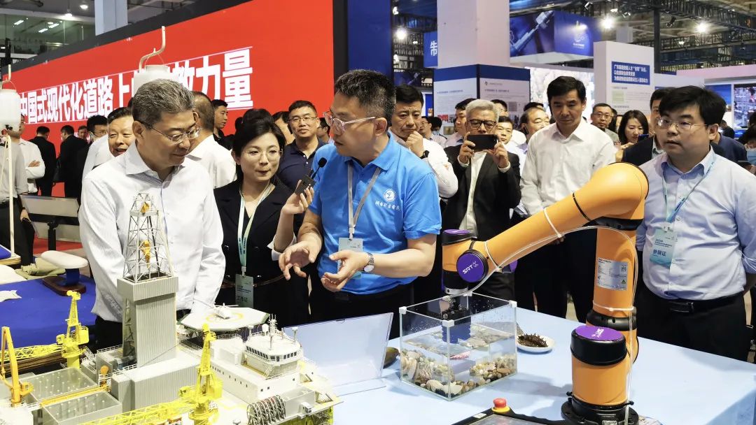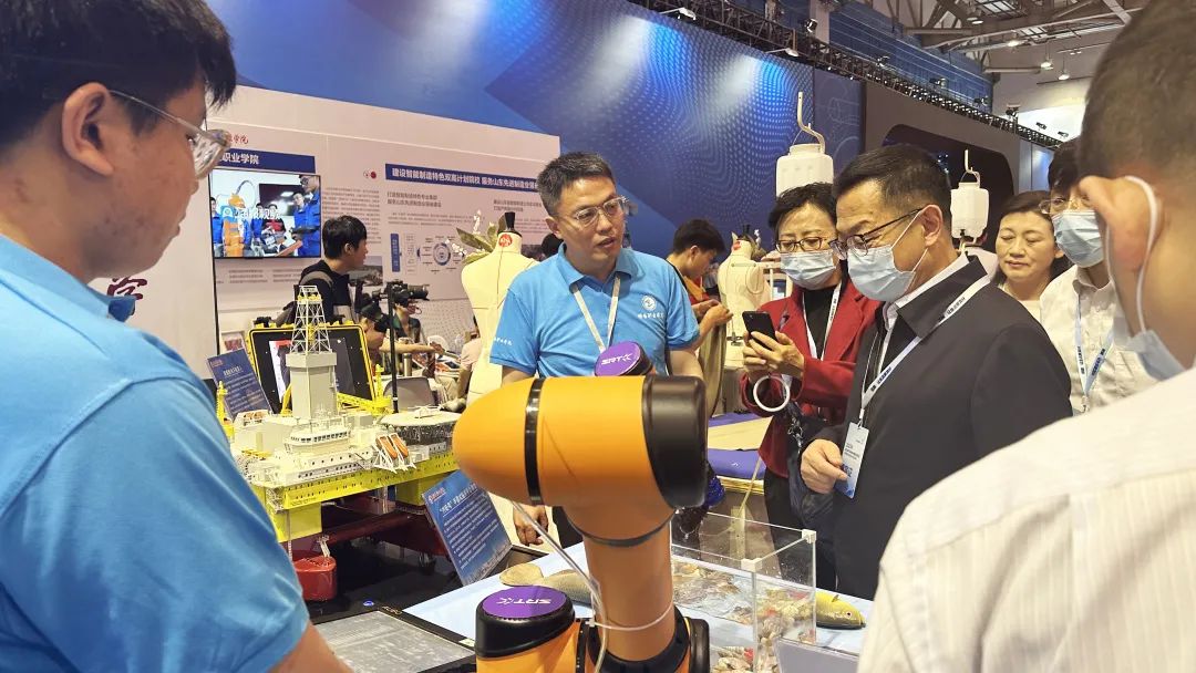 在本屆職業(yè)教育活動(dòng)周成果展上,由SRT展出的“海底智能機(jī)器人應(yīng)用”成為本屆活動(dòng)周的一大亮點(diǎn)。14日,活動(dòng)周啟動(dòng)第一天,教育部部長(zhǎng)懷進(jìn)鵬、副部長(zhǎng)吳巖一行領(lǐng)導(dǎo)蒞臨SRT展臺(tái),參觀展示方案,并就“智慧海洋牧場(chǎng)”教育成果、技術(shù)應(yīng)用等與現(xiàn)場(chǎng)負(fù)責(zé)人展開初步交流。