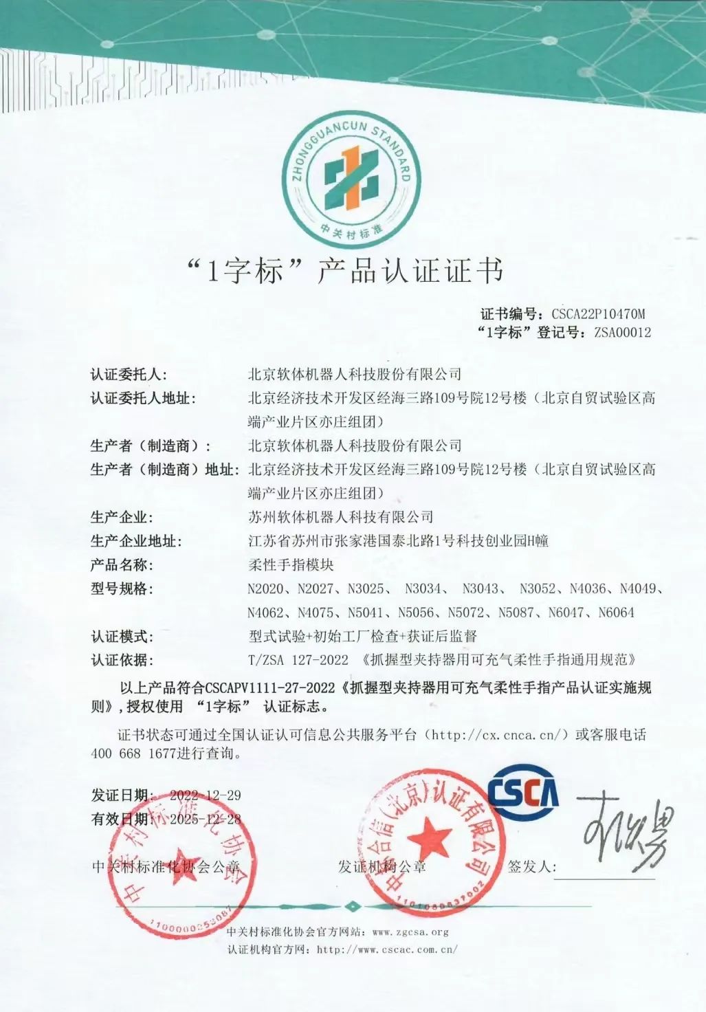 SRT積極響應(yīng)國(guó)家開展標(biāo)準(zhǔn)化的步伐,依托在軟體機(jī)器人領(lǐng)域深耕多年的全產(chǎn)業(yè)鏈優(yōu)勢(shì),既是T/ZSA 127-2022《抓握型夾持器用可充氣柔性手指通用規(guī)范》等3項(xiàng)中關(guān)村標(biāo)準(zhǔn)的主要起草單位,也是獲得首張中關(guān)村標(biāo)準(zhǔn)產(chǎn)品“1字標(biāo)”認(rèn)證的行業(yè)內(nèi)企業(yè)。