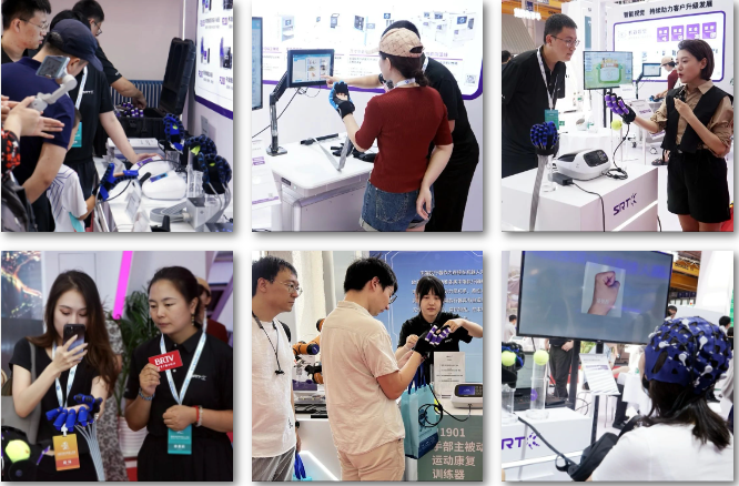 在智慧醫(yī)養(yǎng)領(lǐng)域,SRT不斷積極探索,深入推動軟體機(jī)器人技術(shù)在康復(fù)醫(yī)療向的應(yīng)用與發(fā)展。本次展會上,SRT帶來8款不同型號的手功能康復(fù)訓(xùn)練設(shè)備。該產(chǎn)品體系將軟體材料學(xué)、氣動控制技術(shù)等軟體機(jī)器人技術(shù)與康復(fù)醫(yī)學(xué)理論相結(jié)合,通過對患者手部的主被動組合訓(xùn)練,刺激其神經(jīng)和肌肉,協(xié)助手部恢復(fù)功能,實現(xiàn)橫跨患者全恢復(fù)周期的標(biāo)準(zhǔn)化主被動康復(fù)訓(xùn)練。適用于由腦卒中、脊髓損傷、腦癱等疾病或損傷引起的各種手功能障礙的患者。