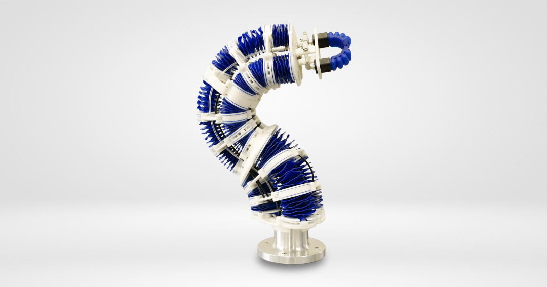 在此背景下,SRT研發(fā)出了BFA(Bionic Flexible Arm)柔性臂,基于先進(jìn)柔性氣動肌肉和仿生結(jié)構(gòu)構(gòu)型,搭配高精度氣流驅(qū)控和柔韌核心控制算法,實現(xiàn)了對剛?cè)狁詈系娜嵝员鄣钠椒€(wěn)高精度控制,靈巧柔韌、自由轉(zhuǎn)向,能進(jìn)行任意角度的扭轉(zhuǎn)。