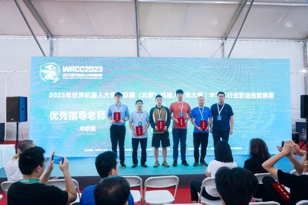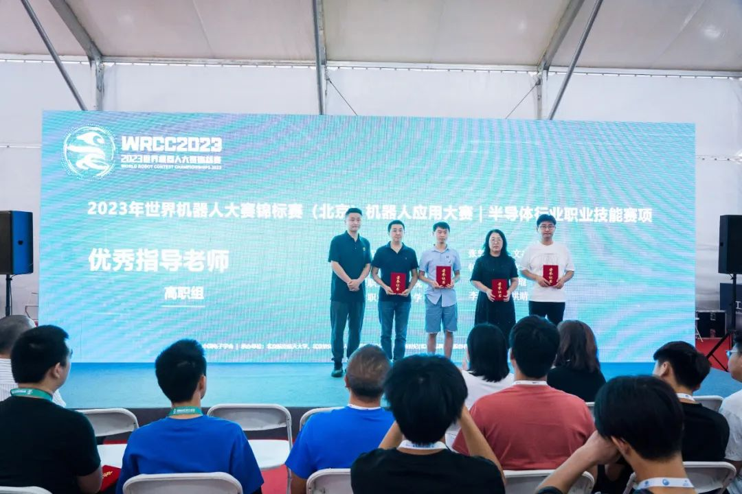此外,在頒獎(jiǎng)典禮上,獲得冠軍、亞軍、季軍參賽隊(duì)的指導(dǎo)教師被授予“2023世界機(jī)器人大賽錦標(biāo)賽(北京)-機(jī)器人應(yīng)用大賽-半導(dǎo)體行業(yè)職業(yè)技能賽項(xiàng)優(yōu)秀指導(dǎo)教師”榮譽(yù)稱號(hào),并現(xiàn)場(chǎng)頒發(fā)榮譽(yù)證書。