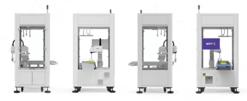 在車間部署方面,SRT移載機(jī)器人應(yīng)用平臺(tái)整機(jī)占用的場(chǎng)地只有3*4.5m,其中各單機(jī)進(jìn)行了標(biāo)準(zhǔn)化設(shè)計(jì),結(jié)構(gòu)小巧,可以根據(jù)實(shí)際生產(chǎn)工藝需要,進(jìn)行多種組合后擺放在適合的工位,完成自動(dòng)化生產(chǎn)線的布置,從而滿足各種大批量生產(chǎn)的需要。