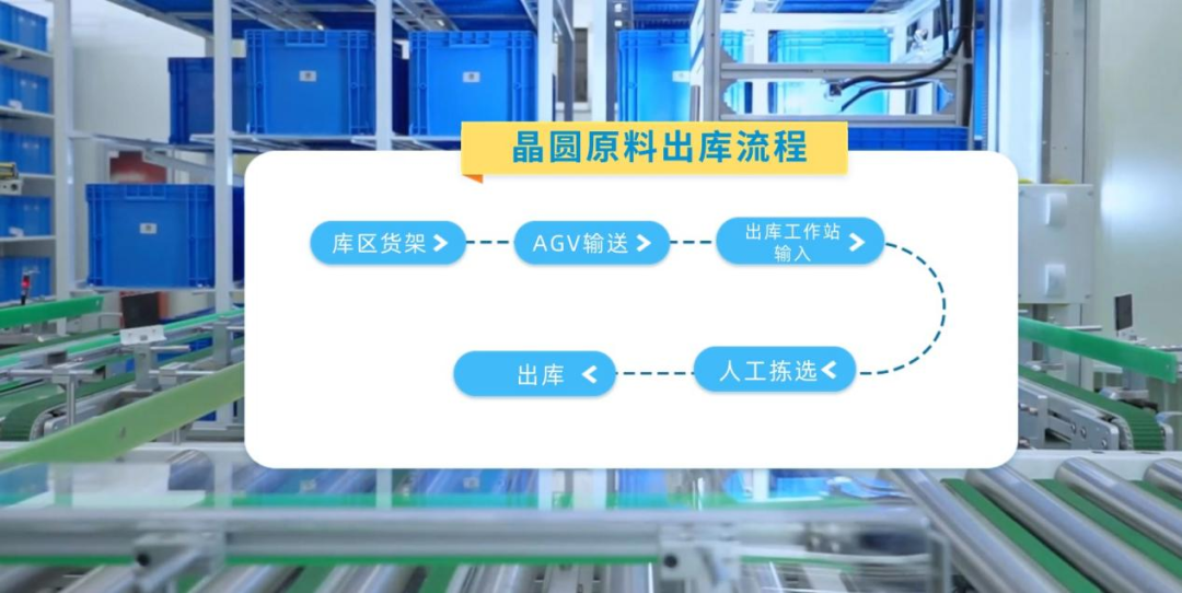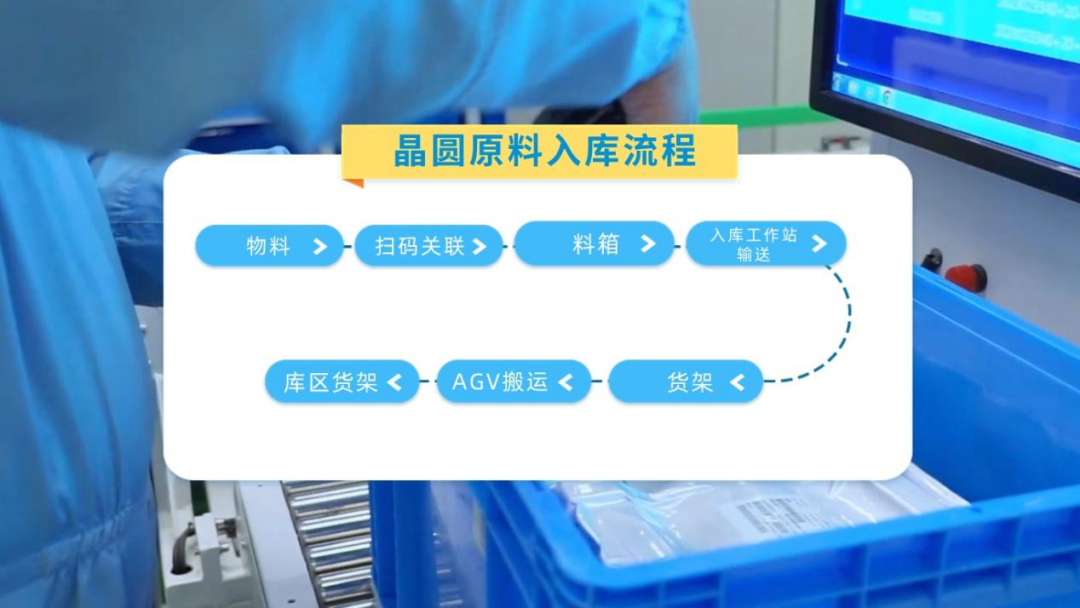 SRT充分利用倉庫立體空間為倉庫擴(kuò)容,300平方米的晶圓/原料自動化立體倉庫內(nèi)可容納17個貨架,每個貨架裝載30個料箱,保持了箱式揀選的高效率優(yōu)勢。其中還包含了AGV系統(tǒng)、WMS庫位管理系統(tǒng)、上下料機(jī)械手、視覺等,實現(xiàn)了晶圓產(chǎn)品原料的自動化存儲以及分級上下料,并為后期整個產(chǎn)業(yè)園區(qū)的物流自動化提供高標(biāo)準(zhǔn)的檢驗成果。其作業(yè)流程參考如下:
