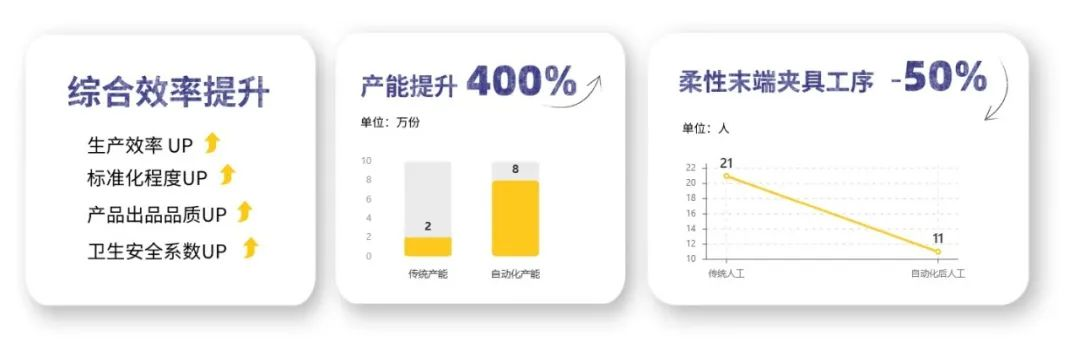 “相較于傳統(tǒng)生產(chǎn)模式伴有人工成本高,產(chǎn)能低的生產(chǎn)弊端,自從投入自動化生產(chǎn)線后,面皮產(chǎn)品日產(chǎn)能可以達(dá)到8萬份,且僅自動化生產(chǎn)線柔性末端夾具這一道工序上,每天每班次就可以節(jié)省10個人工?!睂殞毭嫫て放坡?lián)合創(chuàng)始人、香味氏族公司副總經(jīng)理王毅說道。
