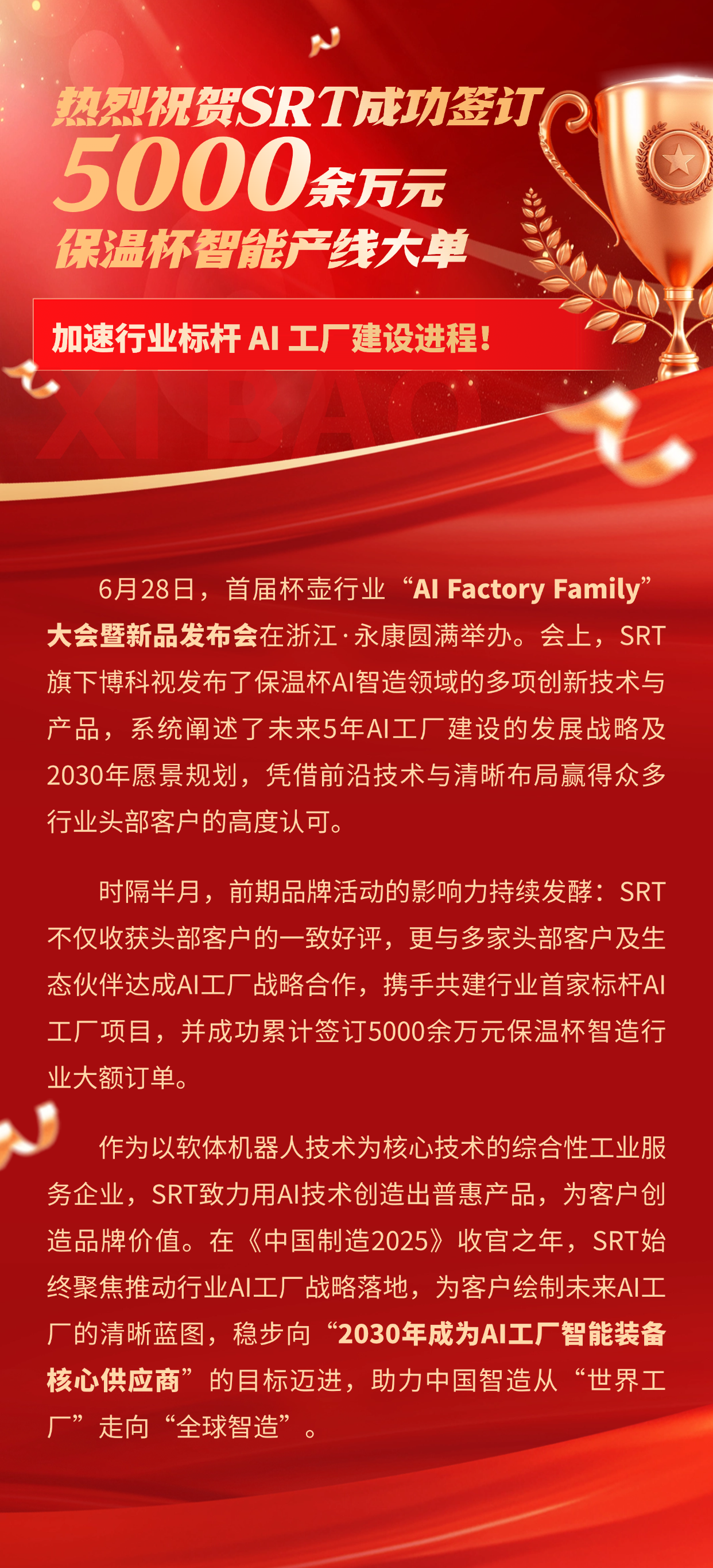 在AFF大會上,博科視分享了數(shù)字化工廠現(xiàn)有的AI落地應(yīng)用,發(fā)布了保溫杯AI工廠智能產(chǎn)線演進(jìn)規(guī)劃與保溫杯智造的AI車間方案并制定了清晰的工業(yè)AI裝備AIOT技術(shù)演進(jìn)方案,加速保溫杯智造的產(chǎn)線面向工業(yè)4.0平滑演進(jìn),推動AI工廠的基礎(chǔ)設(shè)施建設(shè)。在浙江省及永康市政府的大力支持下,SRT正加速構(gòu)建AI工廠基礎(chǔ)設(shè)施,打造“云-邊-端”協(xié)同閉環(huán)。