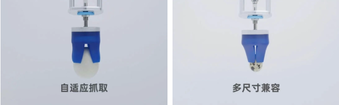 與傳統(tǒng)真空吸盤不同,柔性夾爪通過均勻施加包容性壓力,僅以“指尖”式的極小面積實現(xiàn)穩(wěn)定抓持。這不僅從根本上避免了真空吸附導致的交叉污染,同時采用符合FDA認證的安全材質(zhì),更易于徹底清潔與消毒,從多維度構(gòu)筑了衛(wèi)生安全屏障。